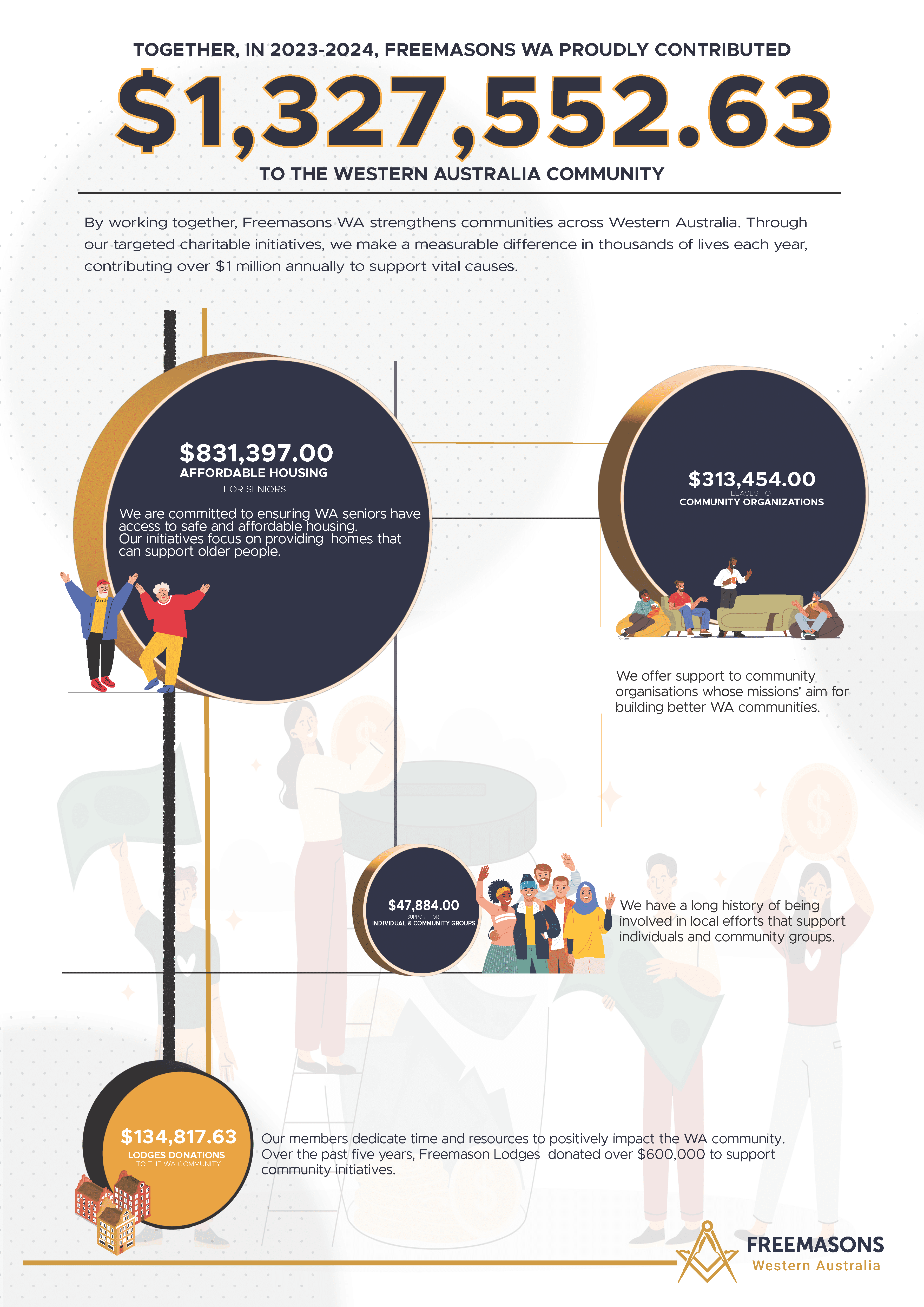 Each year, the scope of our activities varies, driven by the evolving challenges and opportunities within our WA community. We extend our heartfelt thanks to our Masonic community for their dedication and generosity. Their efforts have enabled us to make a meaningful difference, paving the way for continued growth and support in the future.